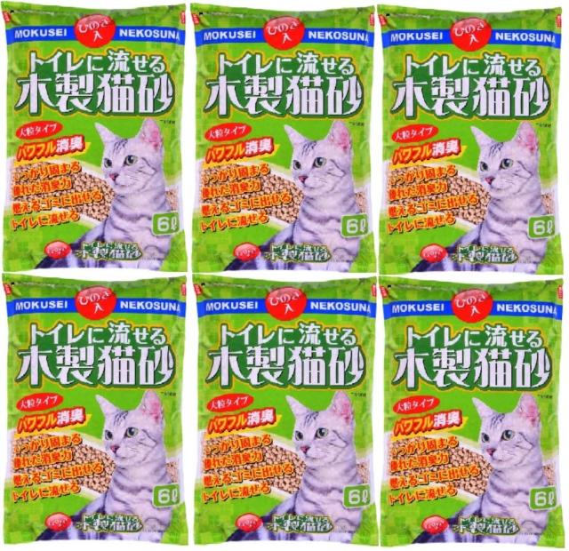 常陸化工 トイレに流せる木製猫砂 6L×6個 (ケース販売)