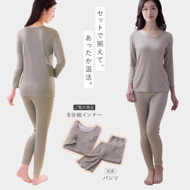 インナー レディース 冬 綿100% 日本製 吸湿発熱 暖かい あったか シャツ 8分袖 肌側綿のあったか2重インナー 8分袖 下着 肌着 メール便対応