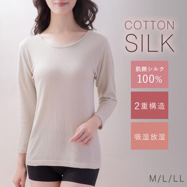シルク インナー レディース 肌面 シルク100% 綿100% 日本製 冬 暖かい あったか シャツ 8分袖 敏感肌 シルクと綿のやわらかインナー 8分袖 肌着 下着 メール便対応