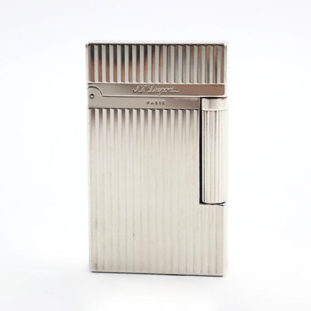 外装美品○Dupont デュポン ライン2 ヴァーティカルライン ストライプ柄 スクエアフォルム ローラー式 ガスライター シルバー 着火不可