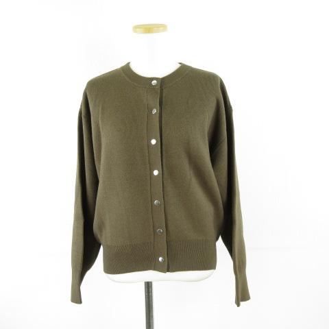 【中古】ジーユー GU メタルボタンクルーネックカーディガン 長袖 ダークブラウン 茶 M *A802 レディース
