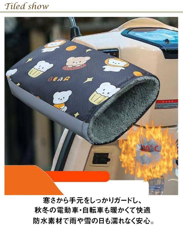 | 自転車に最適な暖かハンドルカバーです。 たっぷり中綿入り&もこもこ裏ボアで保温性抜群。 ぽかぽか暖かい防寒ハンドルカバー。もこもこ軽量モデルはハンドル操作の妨げにならず安心してご利用いただけます。 寒さから手元をしっかりガードし、秋冬の電動車・自転車も暖かくて快適◎ 防水素材で雨や雪の日も濡れなく安心。 女性に使っていただきたいかわいいデザインが特徴。 寒い冬にバイクで通勤・通学・アウトドア、サイクリングなどに欠かせない防寒グッズです | |