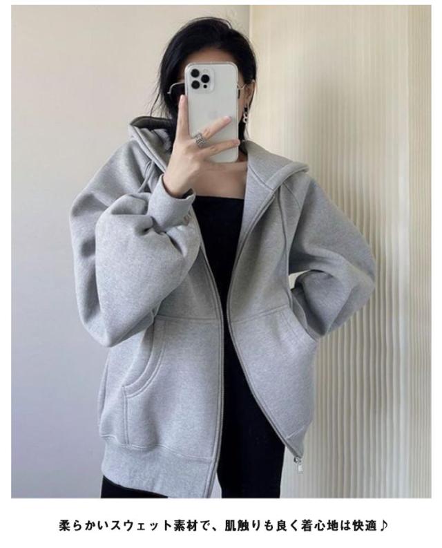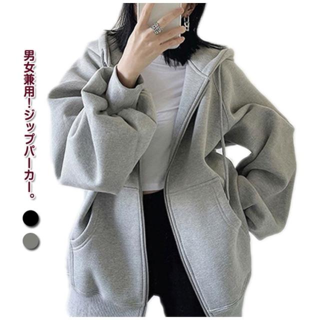 パーカー レディース メンズ 薄手 裏起毛 ジップアップパーカー 秋 冬 フード付き アウター ジップアップ パーカー スウェット 長袖 ライトアウター 春秋冬 ゆったり 大きいサイズ 韓国ファッション おしゃれ 可愛い きれいめ 無地 グレー ブラック 送料無料