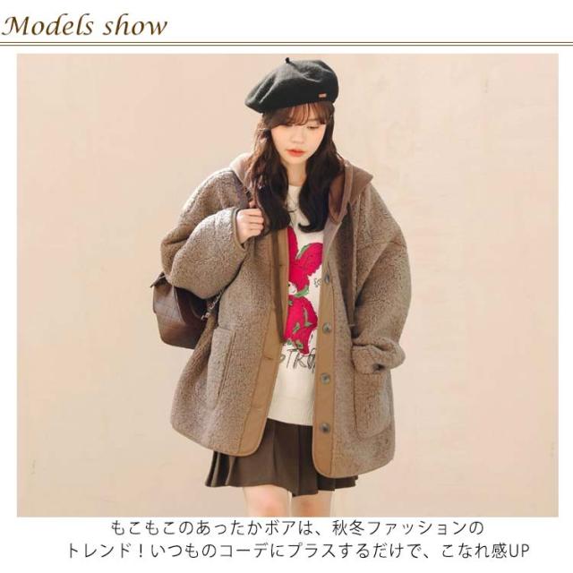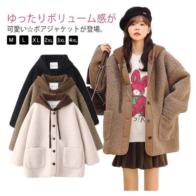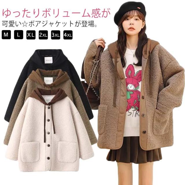 ボアコート ボアアウター ボアパーカー マタニティー 長袖 ボア フード付き 羽織り レディース ゆったり ふわふわ コート ブルゾン ボアジャケット カジュアル アウター 大きいサイズ もこもこ 冬 秋 防寒 あったか 体型カバー