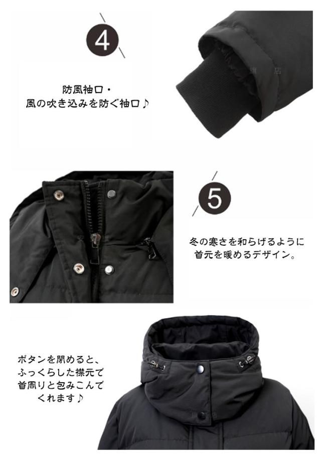 | ダウンをたっぷり90%! S-4XL 超ロング丈ダウンコート ダウン(羽毛)を贅沢に90%使用しています。 ダウンはたっぷりの空気を含んでいます。 空気の層は体温を逃さず、冷たい外気を遮断します。そのため人が快適とする温度を保つことができるのです。 取り外し可能な帽子に紐付きで、調整できます♪ ポケット裏地はもこもこ生地、中まで暖かいです。 左右にある各4つスナップボタン スナップボタンでアレンジできるスリットスりで脚さばきも楽々 防風袖口・風の吹き込みを防ぐ袖口♪ 冬の寒さを和らげるように首元を暖めるデザイン。 ボタンを閉めると、ふっくらした襟元で首周りと包みこんでくれます♪ | |
