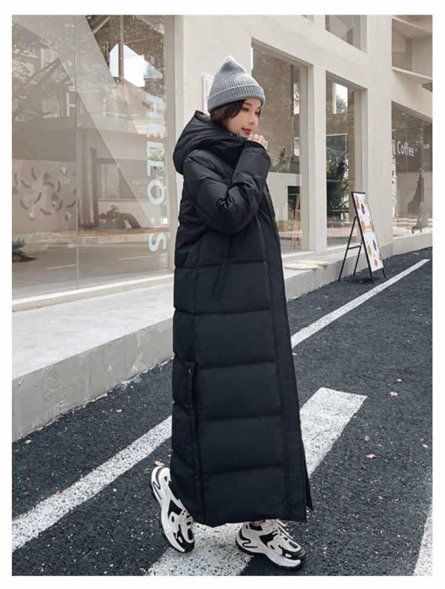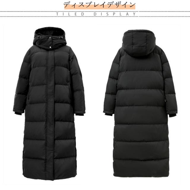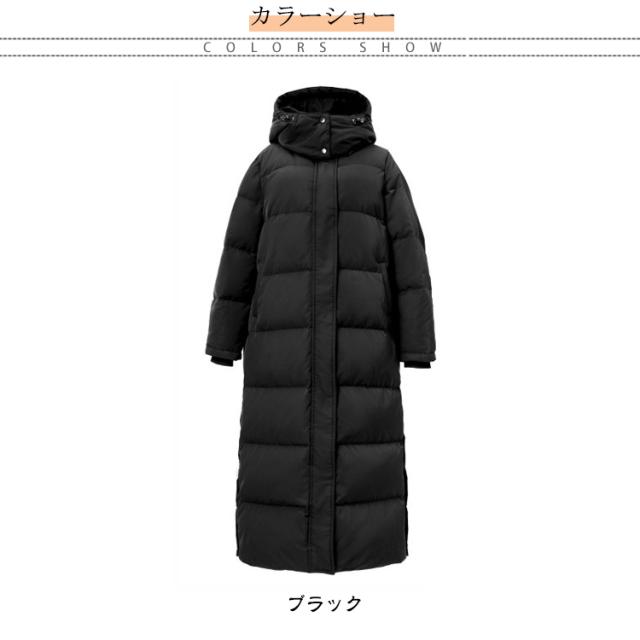 中綿ジャケット 冬服 90%ダウン ダウンコート ベンチコート レディース フード 90%ダウン 冬用 超ロングコート 防寒 中綿コート ロング丈 超ロング丈 黒 ブラック ロング 上品 おしゃれ 着痩せ ハイネックコート 帽子付き 脱着可 保温性抜群 あったか