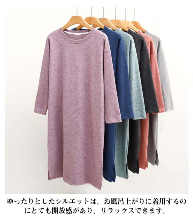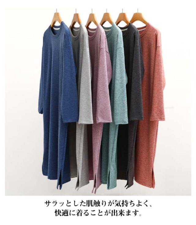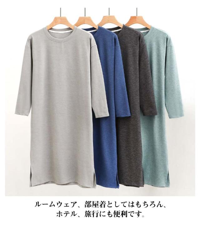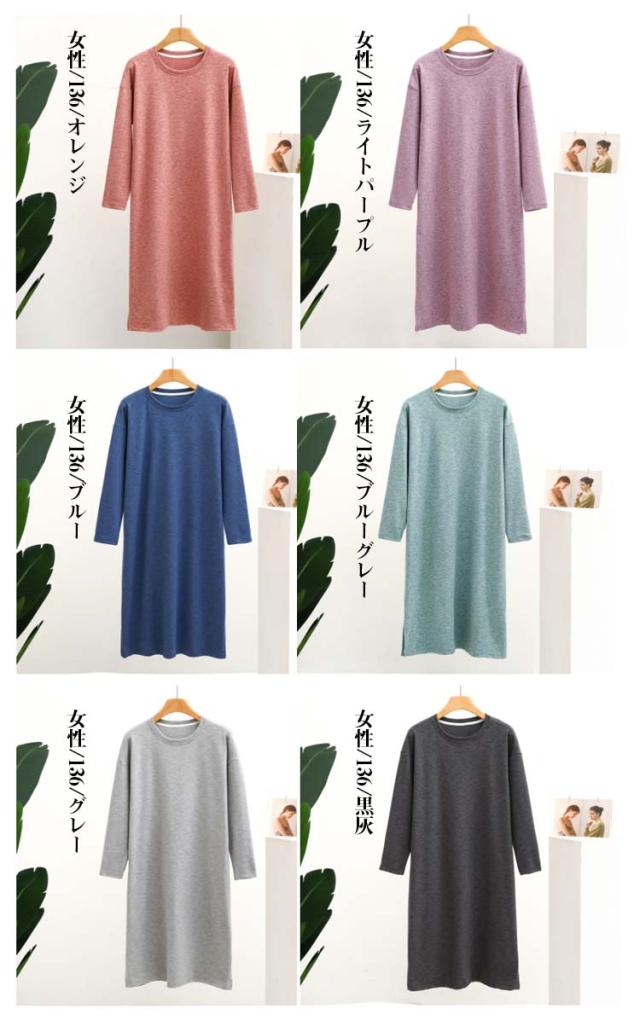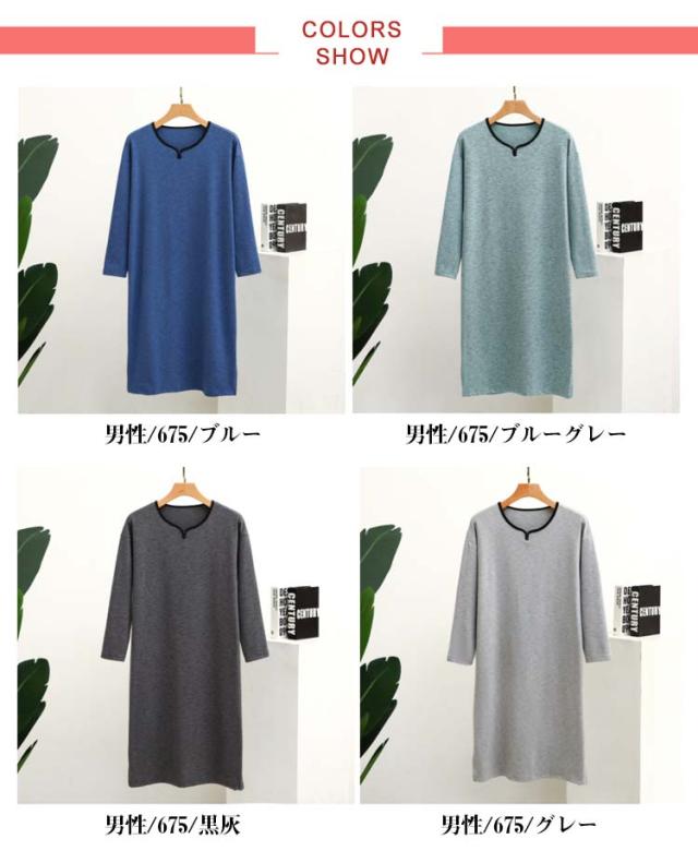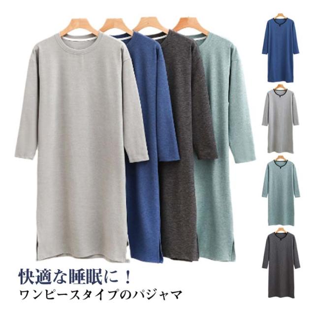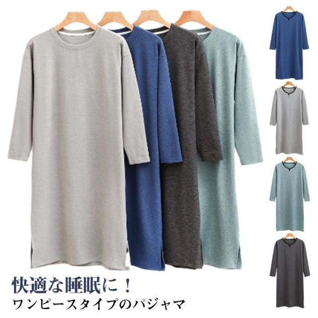 ワンピース パジャマ クールネック レディース メンズ 大きいサイズ ゆったり 春秋 シンプル 春秋物 ルームウェア 無地 リラックスウエア 柔らかい 寝巻き 長袖 パジャマ 体型カバー 部屋着 通気性 柔らかい リラックス感 寝間着 ギフト