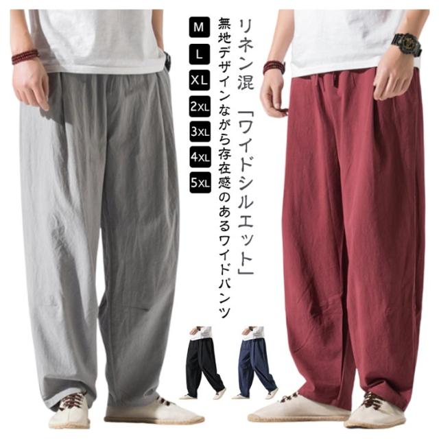 | リネン混 「ワイドシルエット」 M-5XL 無地デザインながら存在感のあるワイドパンツ どんな着こなしにも合わせやすいワイドバギーパンツ しなやかなドレープが上品かつリラックスした雰囲気を漂わせます。 ボリュームのあるパンツなので、シンプルなトップスと合わせるだけで存在感のあるスタイルに。 着回しやすく、また1本で存在感のあるおすすめのパンツです。 | |