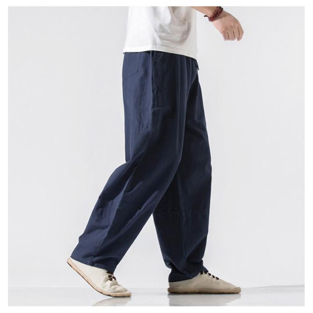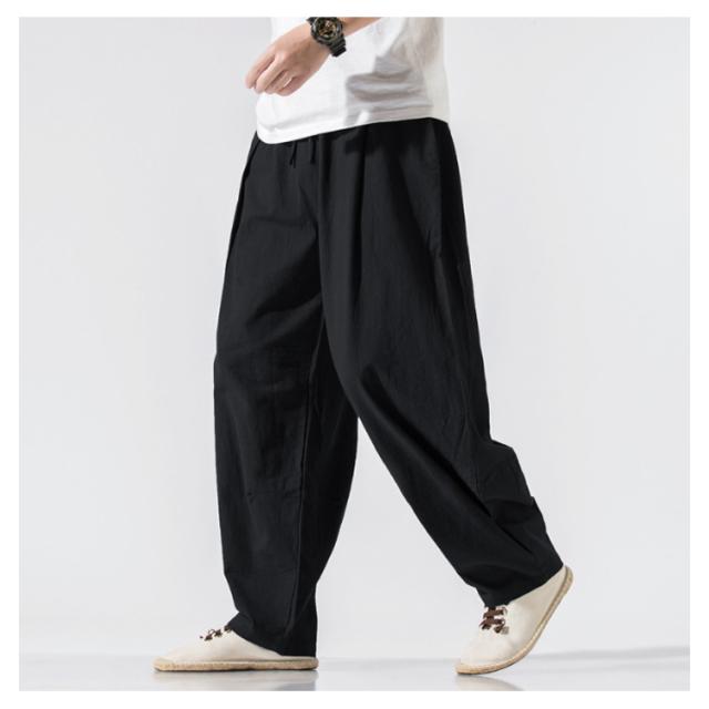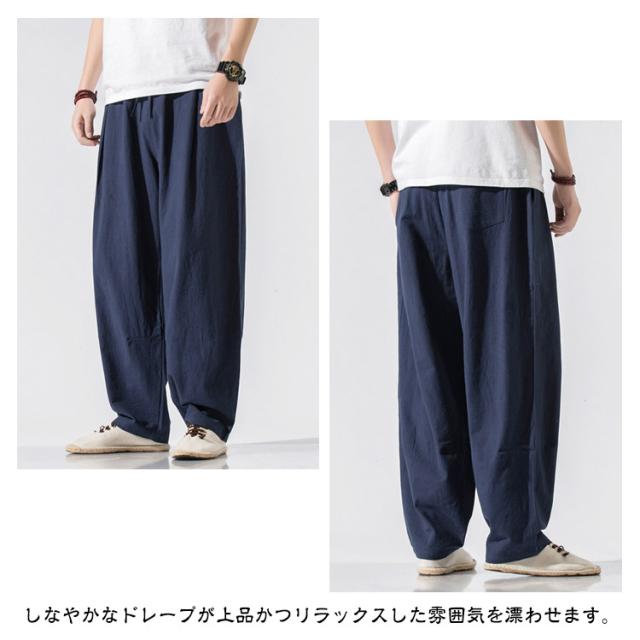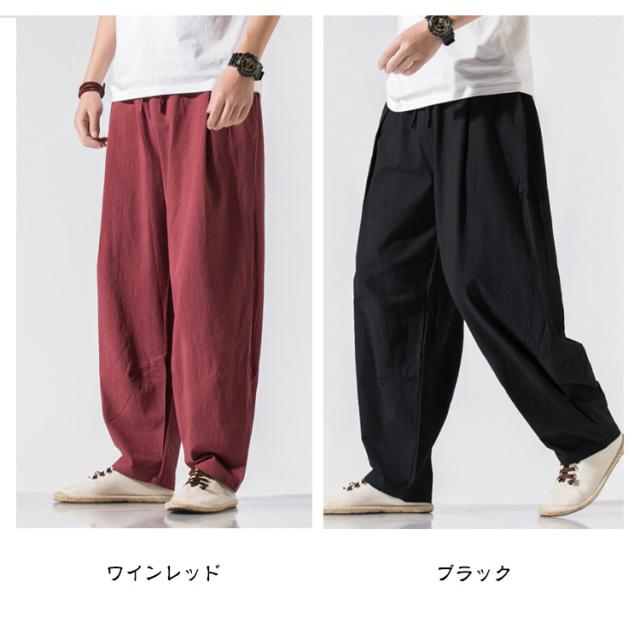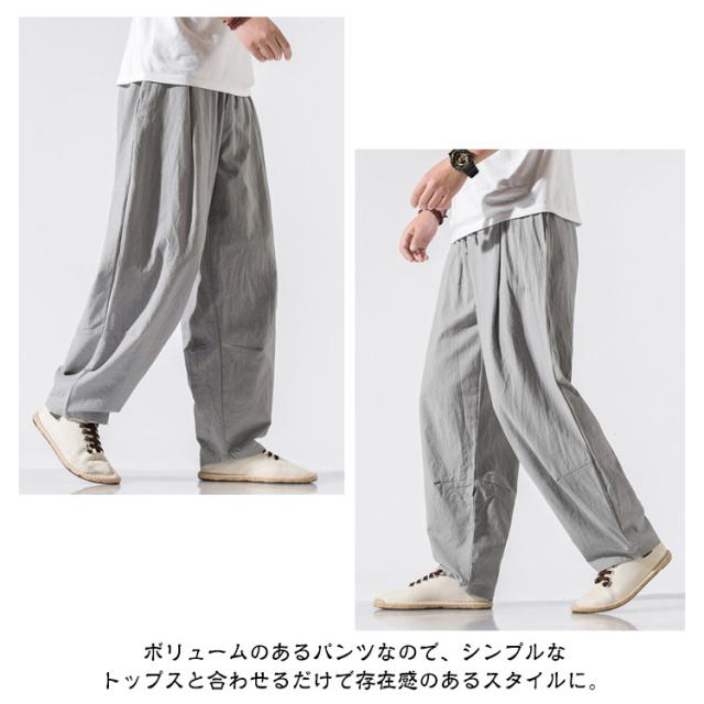 ゆったり カジュアルパンツ イージーパンツ 太め サルエル コットン ワイドパンツ バギーパンツ メンズ リラックス 無地 薄手 ボトムス ウェストゴム ワイドパンツ オールシーズン 長ズボン リラックスパンツ 父の日 春 夏 秋