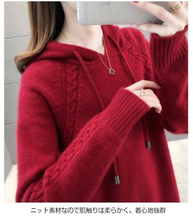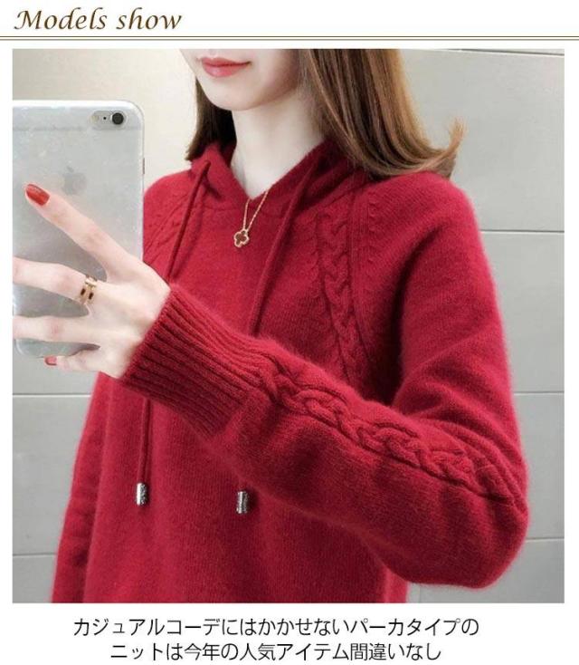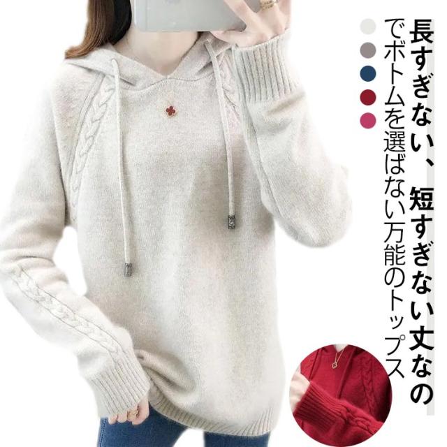 ニット パーカー セーター レディース トップス プルオーバー 厚手 通勤 カジュアル 着回し 着痩せ 長袖 秋 リブニット 新作 冬 体型カバー ゆったり アウター 40代 オフィス 大人 おしゃれ かわいい 30代 カットソー 50代 M S L ニット XL 2XL 3XL