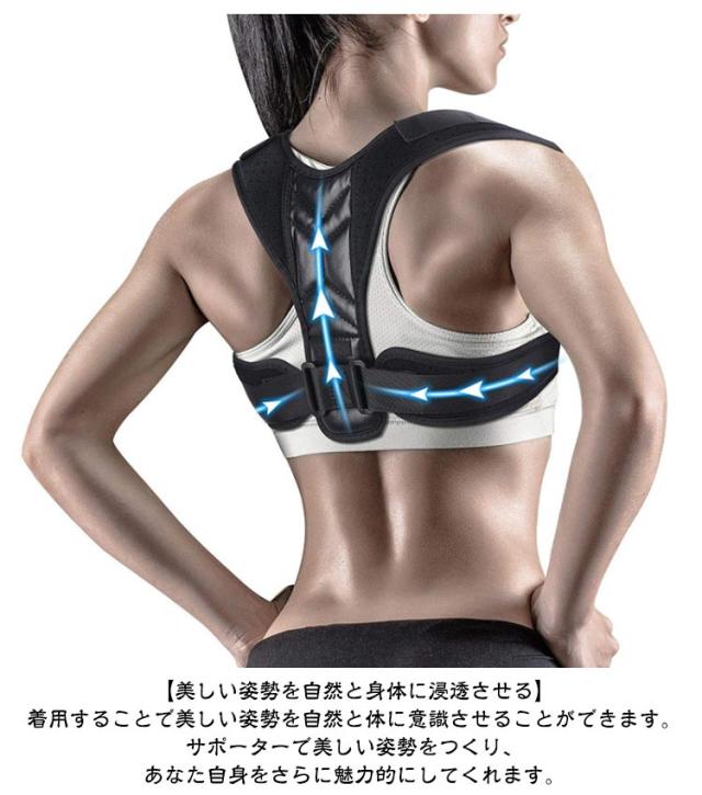 | 美しい姿勢サポート 高粘着マジックテープ 自由に調節可能 背筋サポート 手軽につけられる、人体工学に基づいた設計の背筋サポーターです。 着用時に美しい姿勢を保ちます。猫背の補正、姿勢の補正に。 ☆ 着用時に美しい姿勢を保つ背筋サポーターです。 ☆ 猫背を補正することで、さまざまなケアが期待できます。 ☆通気性とクッション性に優れた素材を使用しており、蒸れにくくフィット感も抜群です。毎日気軽に着用して頂けます。 ☆マジックテープで調整可能で、体型や好みの諦め加減に合わせて自由に調整していただけます。 ☆たすき掛け効果で肩甲骨を引き寄せ、自然に背筋がピンと伸びた正しい姿勢へ導きます。 【美しい姿勢を自然と身体に浸透させる】 着用することで美しい姿勢を自然と体に意識させることができます。サポーターで美しい姿勢をつくり、あなた自身をさらに魅力的にしてくれます。 【自宅で読書や映画鑑賞をしながら】 「ながら」補正で、じっくりと猫背姿勢をケアしていきましょう。 最初は短い時間から始めていただき、体が慣れてきたら、少しずつ装着時間を伸ばしていきましょう。 丸まった方が開き、肩甲骨が引き寄せられストレッチしている感覚がとても気持ち良くなります。 猫背を補正する事で、あらゆる面のケアが期待できます。 【男女兼用・長さ調整可能】 様々な体型の型に使って頂けるよう、マジックテープで長さの調整が可能。男女兼用でご使用いただけます。 また、クッション性と通気性の良いメッシュ生地を採用しており、ムレにくくオールシーズン着用して頂けます。 | |