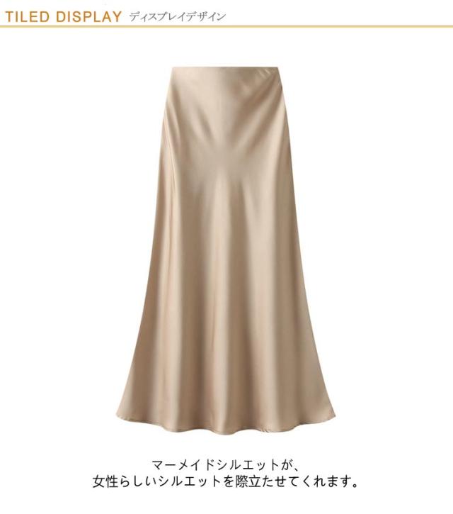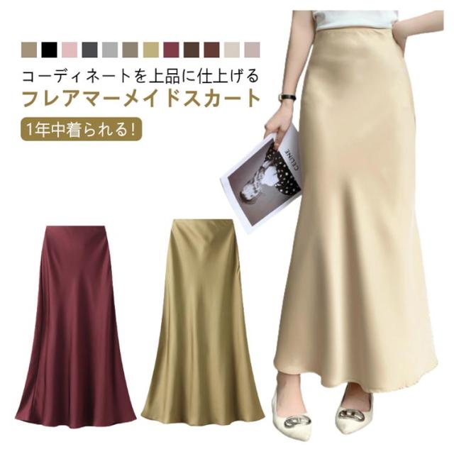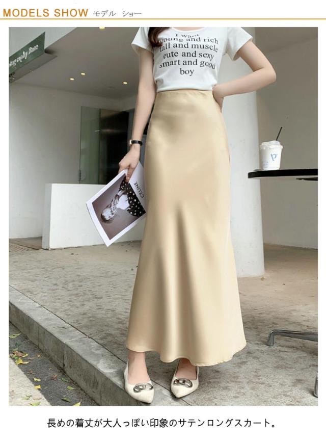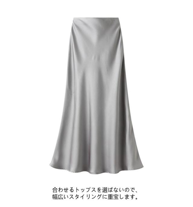 きれいめ とろみ スカート エレガント マーメイドスカート ロングスカート 落ち感 フレア 光沢感 マーメイド マキシ丈 上品 大人 韓国風 フェミニン 通勤 涼感 冷感 涼感 レディース 体型カバー 20代 30代 40代 50代 サテン オトナ 大人 上品 シルエット