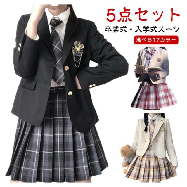 ジャケット 5点セット 女子 中高生 ブレザー 入学式 卒業式 大きいサイズ 高校生 中学生 JK 小学生 卒業式服 小学校 子供服 フォーマルスーツ 入学祝い 制服 女の子 スカート 5点セット ブラウス 長袖 ネクタイ リボン 撮影