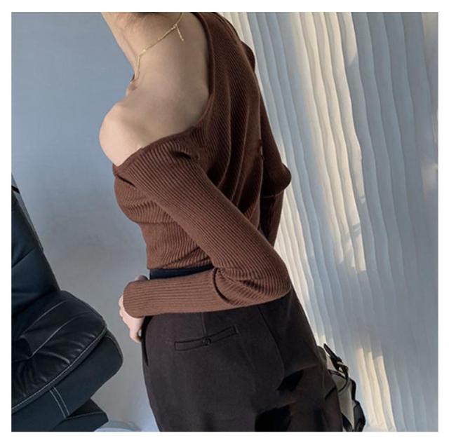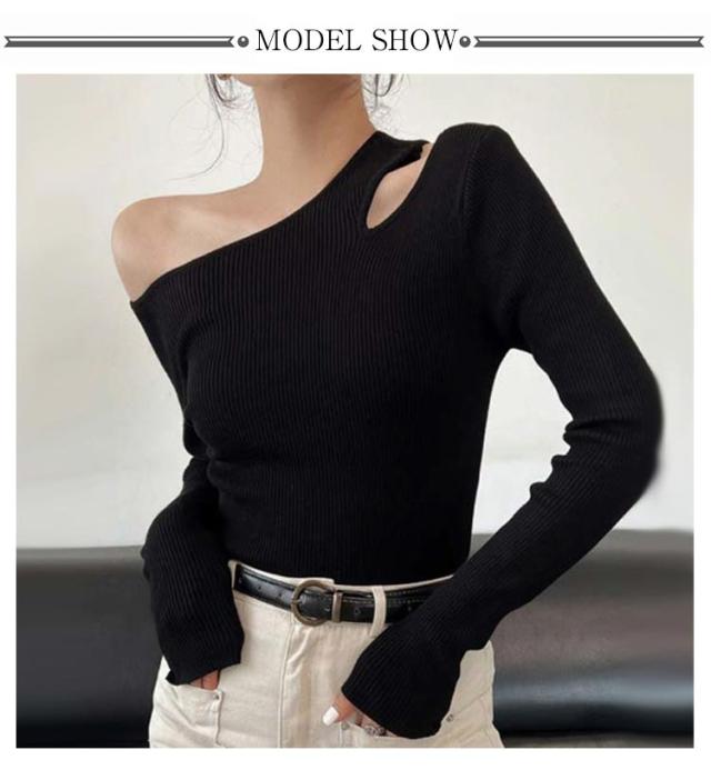 ワンショルダー ニット トップス レディース オフショル オフショルダー リブニット トップス 長袖 ニットプルオーバー セーター ニットソー 冬 秋 細見え 大人可愛い シンプル カジュアル フェミニン 春 秋 冬 送料無料