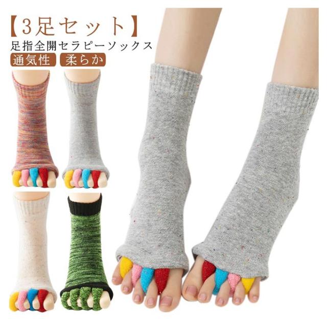 【3足セット】足指全開セラピーソックス スリーピングソックス 足指セラピー 5本指 足指 広げる グッズ セパレーター 外反母趾 サポーター 男女兼用 4色 マッサージ 指なし 外反母趾予防 矯正 靴下 睡眠 スリープ 疲れ 快眠 冷え取り 3足 むくみ解消 温かい