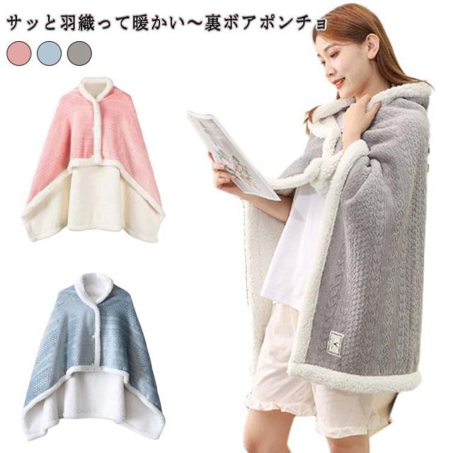 ひざ掛け 着る毛布 リバーシブル 裏ボア ブランケット 2way 着る毛布 マント 防寒 85*120cm スナップボタン付き 大判 あったか おしゃれ リバーシブル カジュアル ポンチョ 冷え防止 防寒着 部屋着 レディース オフィス お年寄り ギフト プレゼント