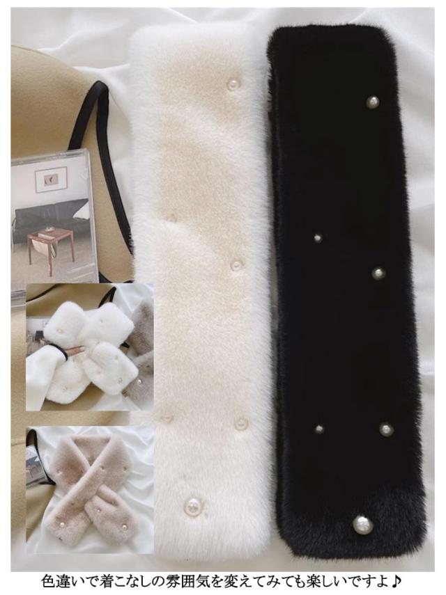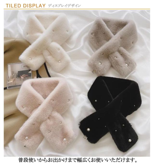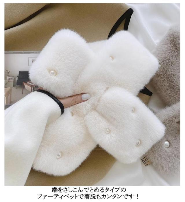 | パールがフェミニンでかわいらしいファーティペットです! 普段使いからお出かけまで幅広くお使いいただけます。 色違いで着こなしの雰囲気を変えてみても楽しいですよ♪ 端をさしこんでとめるタイプのファーティペットで着脱もカンタンです! | |