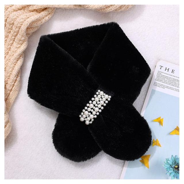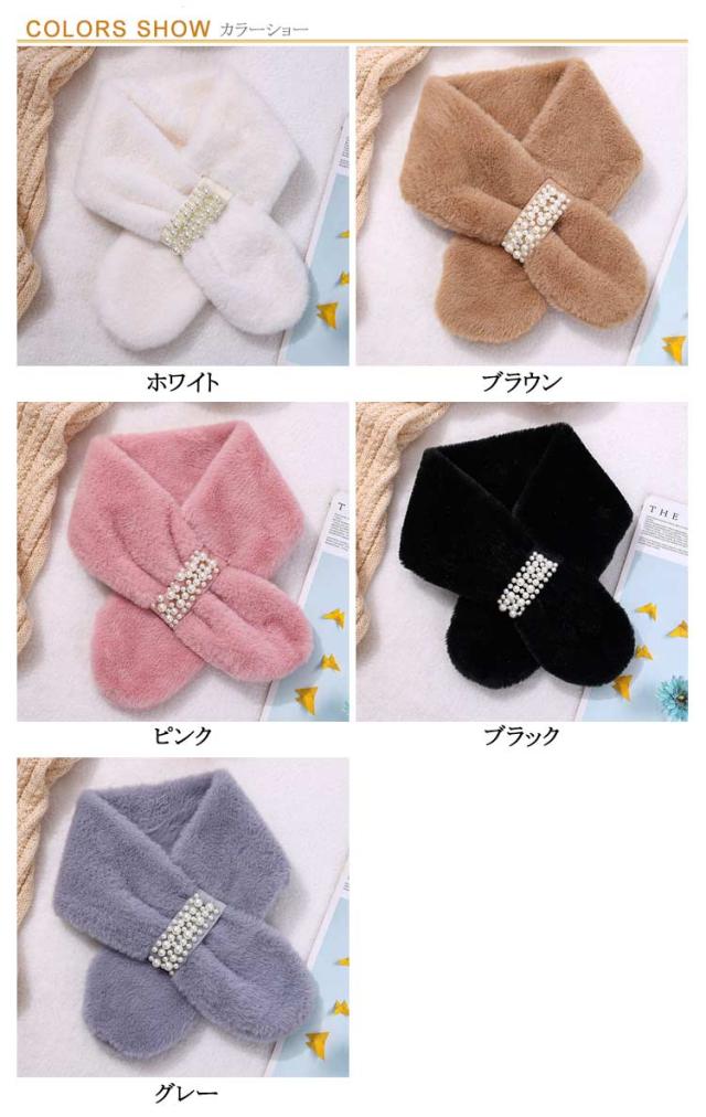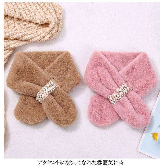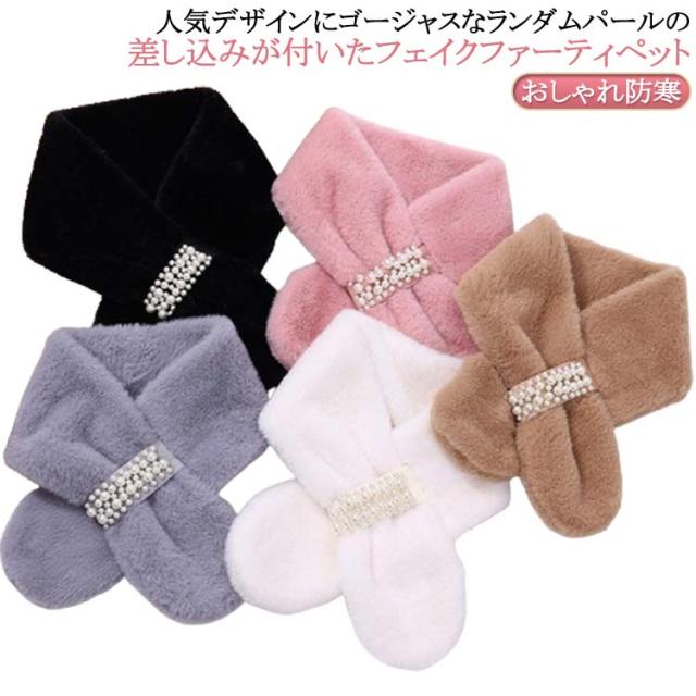 ファーマフラー パールビジュー付きフェイクファーティペット 連パール パーティー フォーマル プレゼント エレガント 高見え モード カジュアル シンプル おしゃれ防寒 女の子 ティペット ファーティペット フェイクファー レディース