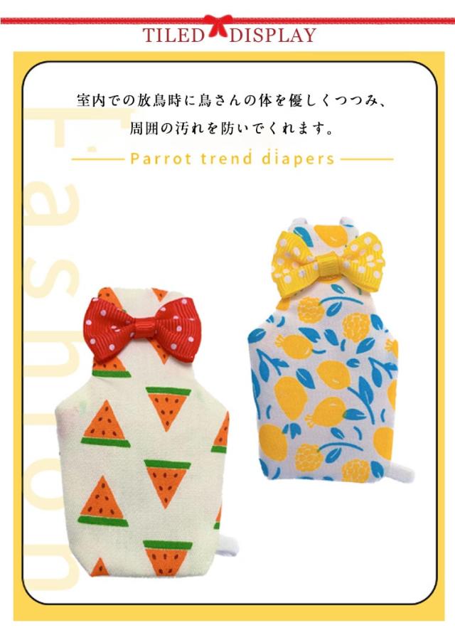 鳥 インコ おむつ 鳥用おむつ インコ鳥 お出かけ ペット フライトスーツ ハーネス 小鳥 服 鳥服 インコの服 フン 鳥用ミニ尿ウェットスーツ かわいい 軽い 小動物用 散歩 訓練 鍛える リボン レモン スイカ パイナップル セキセイインコ