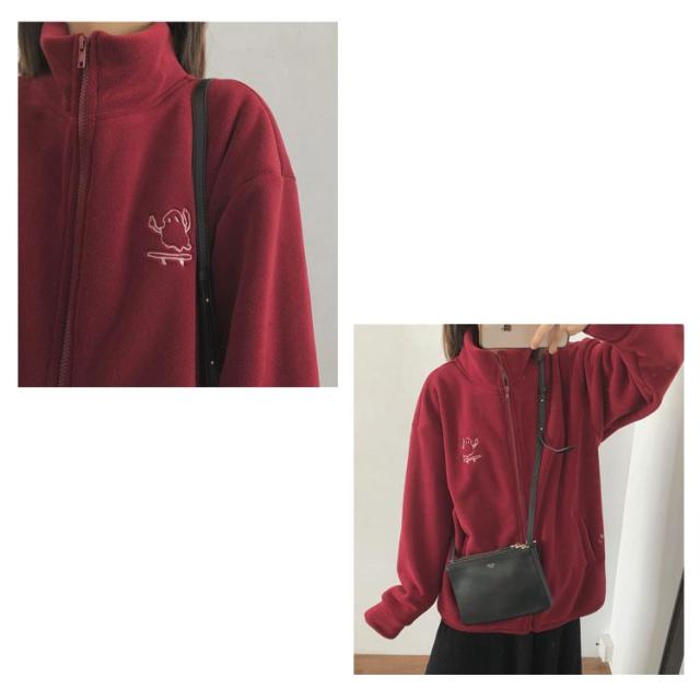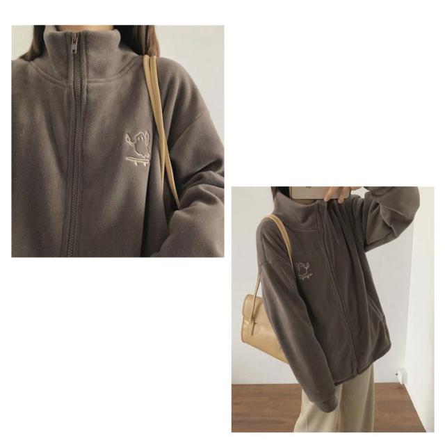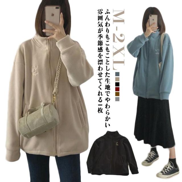 ボアジャケット ボアブルゾン フリース コート ブルゾン アウター ジャケット ボア 防寒コート もこもこ ボアジャケット 冬 ゆったり アウトドア 暖かい 秋冬 フリースジャケット 胸刺繍 あったか