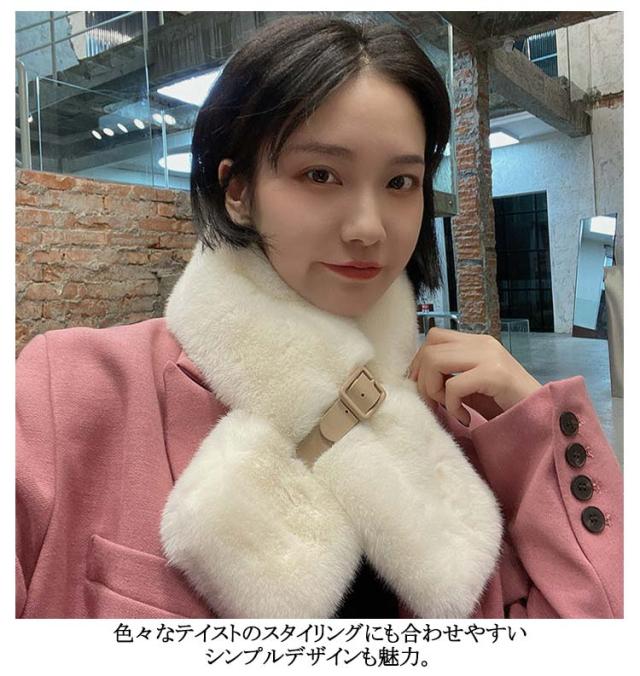 | さりげなく大人可愛い「レザー付リボン風」デザイン このリボン風の入れ込み部分に通すだけの簡単スタイリング ふんわりとした手触りで毛足の短めな、チクチクしないフェイクファー素材 色々なテイストのスタイリングにも合わせやすいシンプルデザインも魅力 | |