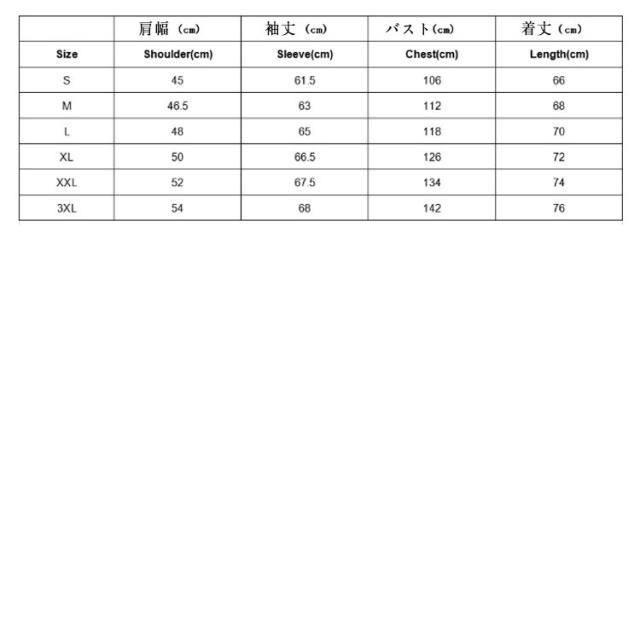 | サイズについての説明 | S M L XL 2XL 3XL サイズ:写真通り ※上記サイズは平置き実寸になります。サイズ表の実寸法は商品によって1-3cm程度の誤差がある場合がございます。 |