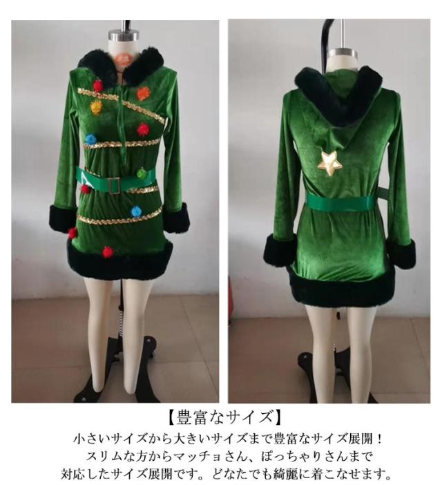 | 衣装+帽子2点セット 【 人気のお得セット 】新作クリスマスツリーのワンピースが登場!お手軽でお得に可愛いクリスマスツリーに変身できます。 【 高品質 】高品質なベロア生地を使用しており、高級感があります。 【豊富なサイズ】小さいサイズから大きいサイズまで豊富なサイズ展開!スリムな方からマッチョさん、ぽっちゃりさんまで対応したサイズ展開です。どなたでも綺麗に着こなせます。 【イベントで大活躍】クリスマス、ハロウィンにはもちろん、仮装パーティ、忘年会、 新年会、 学園祭 、文化祭、演出ショー、撮影 、発表会、各種イベントなどにも使えます!セクシーなサンタコスで、パーティーやイベントで主役間違いなしですよ♪ | |