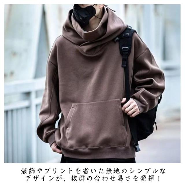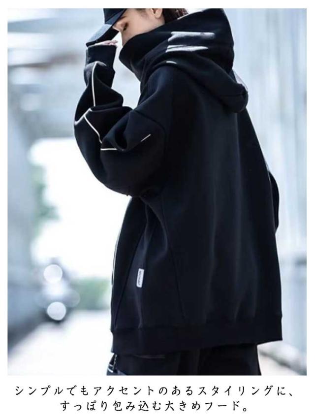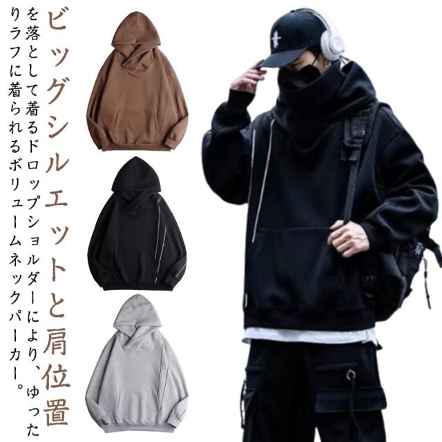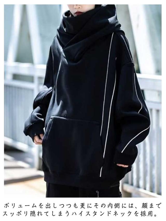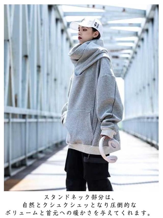 パーカー パイピング ラグラン メンズ ボリュームネック パーカー ボリュームネック ハイネック お尻 カバー レディース ビッグパーカー 首元 忍者 スタンドネック フード付き ハイネック パーカー 送料無料 ビッグシルエット 秋冬