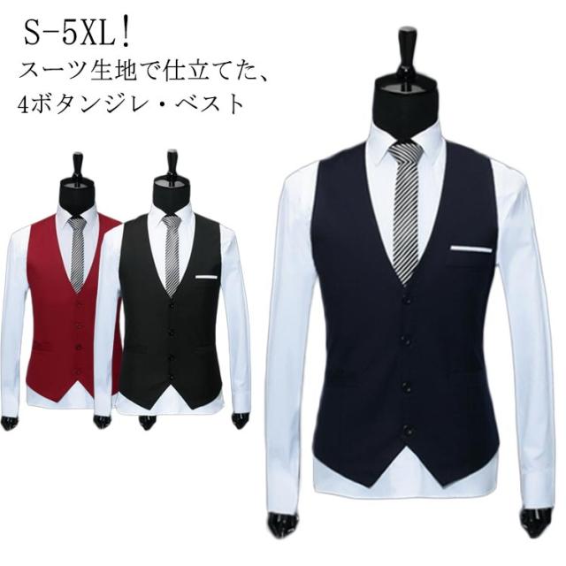 ベスト ベスト 就職 結婚式 ポケット付き スマート カジュアル ビジネス スーツベスト ジレ 男性 無地 ウエスト調整ベルト 洗える Vネック スリム 大きいサイズ カジュアル 紳士服 成人式