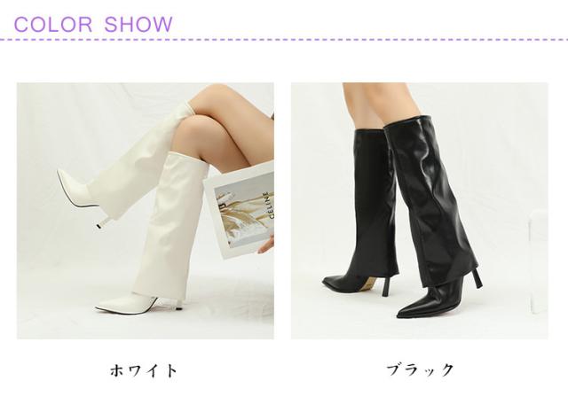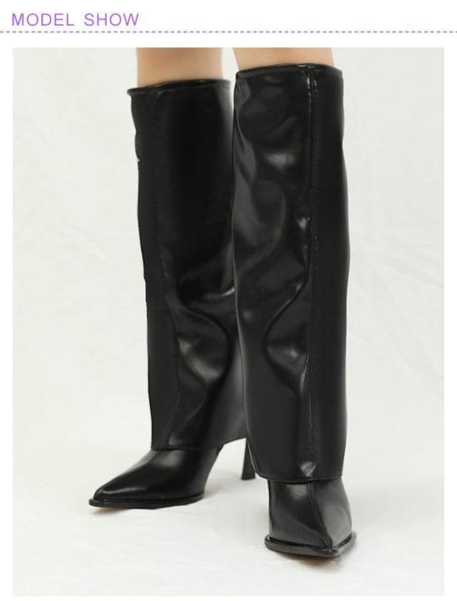 ピンヒール ゲートル カバーブーツ カバーロングブーツ ブラック ロングブーツ ロングブーツ ソリッドカラー 高め 美脚 脚長 トレンド 秋 冬