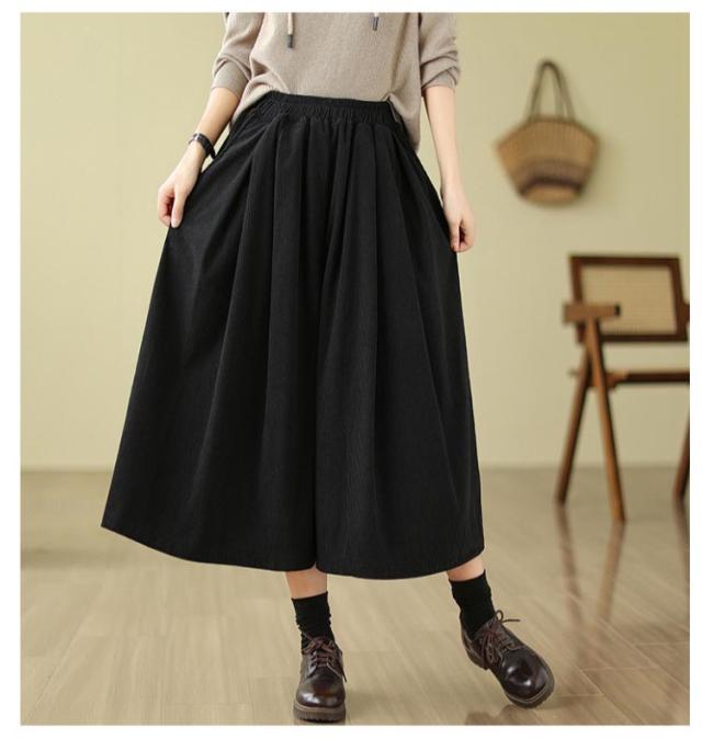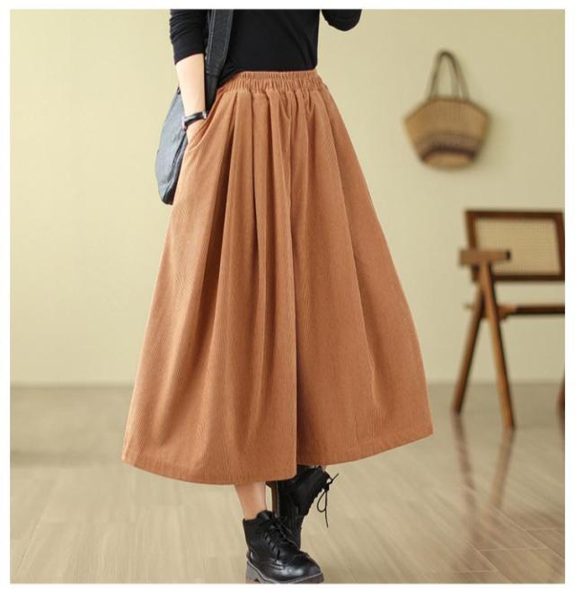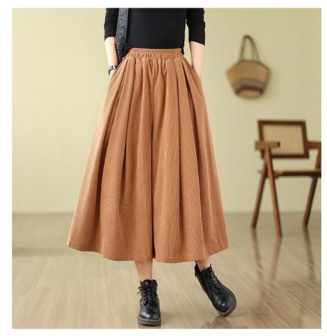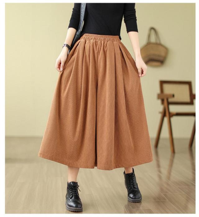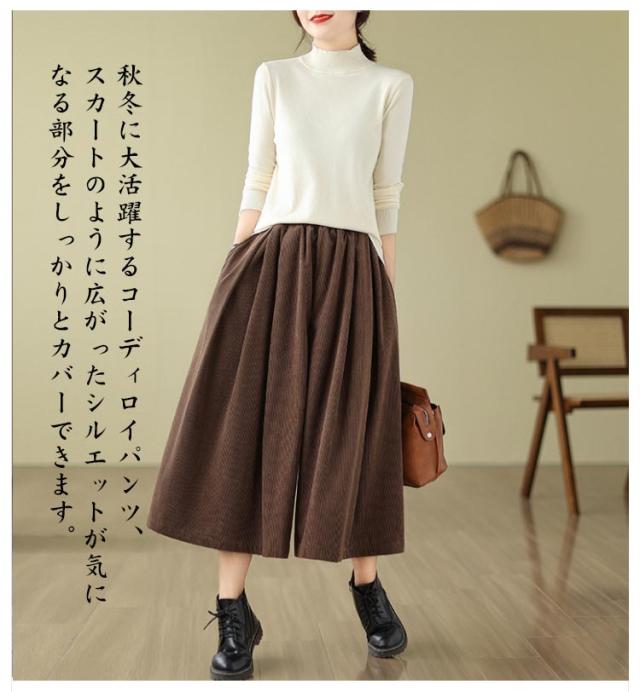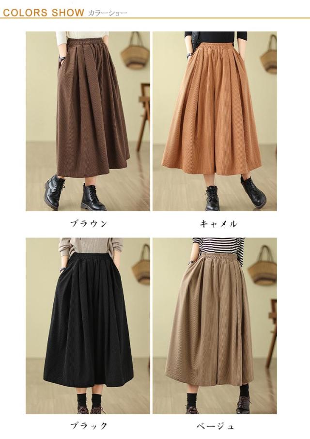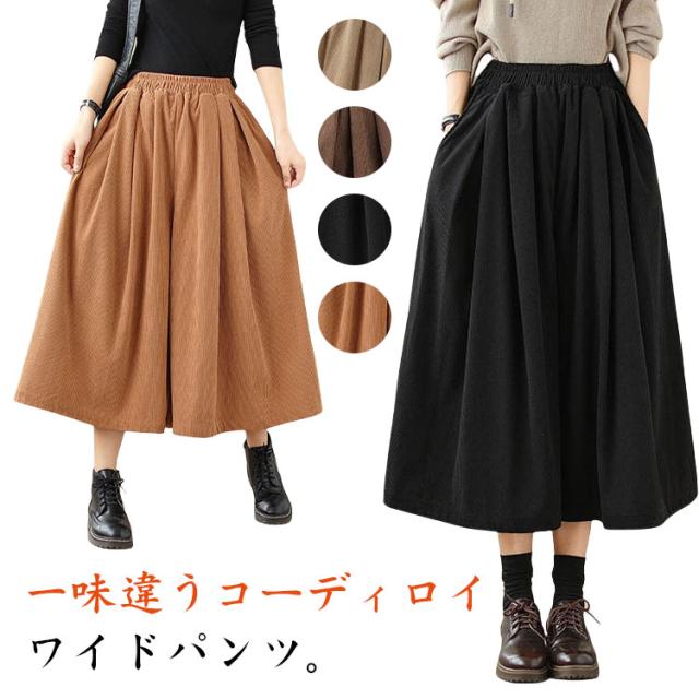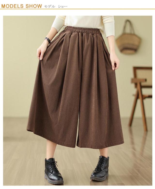 ガウチョ コーデュロイワイドパンツ ウェストゴム 七分丈パンツ 大きいサイズ スカンツ コーデュロイ 大きいサイズ ワイドパンツ ふんわりボリュームが可愛い 体型カバー 韓国ファッション 送料無料