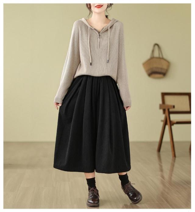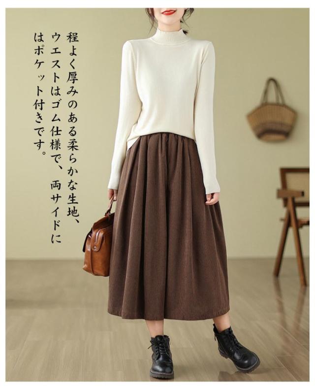 | 一味違うコーディロイワイドパンツ。 秋冬に大活躍するコーディロイパンツ、スカートのように広がったシルエットが気になる部分をしっかりとカバーできます。 丈感もやや短めに設定し、今どきスタイルが楽しめます。 程よく厚みのある柔らかな生地、ウエストはゴム仕様で、両サイドにはポケット付きです。 | |