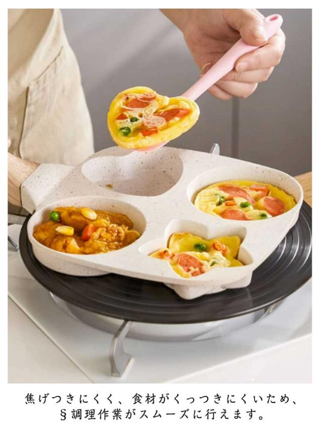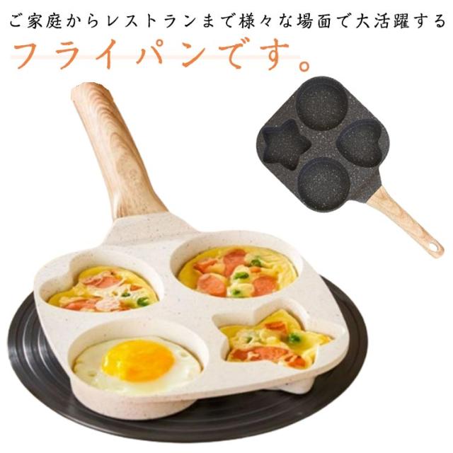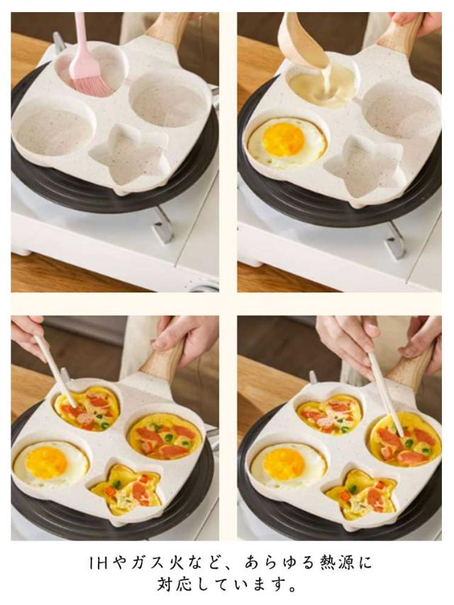 フライパン 4つ穴 目玉焼き IH・ガス火対応 卵焼き器 仕切りパン 目玉焼き 同時調理 パンケーキ 洗いやすい 木製ハンドル お手入れが簡単 朝食 お弁当用 キッチン用品 調理器具 家庭用