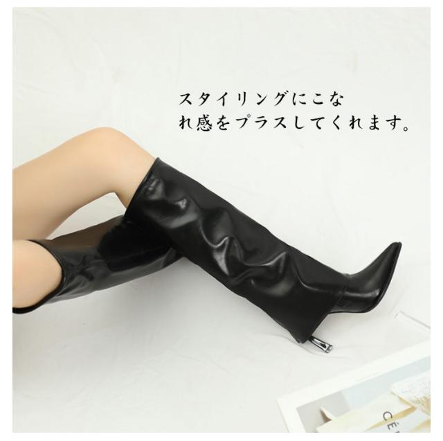 脚長 ロングブーツ フレアカバー ソリッドカラー カバーブーツ ロングブーツ カバーロングブーツ ピンヒール 高め 美脚 ゲートル トレンド 秋 冬