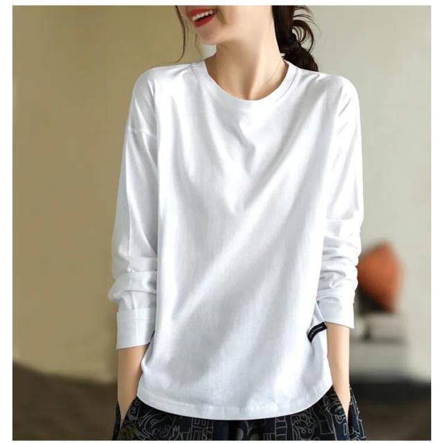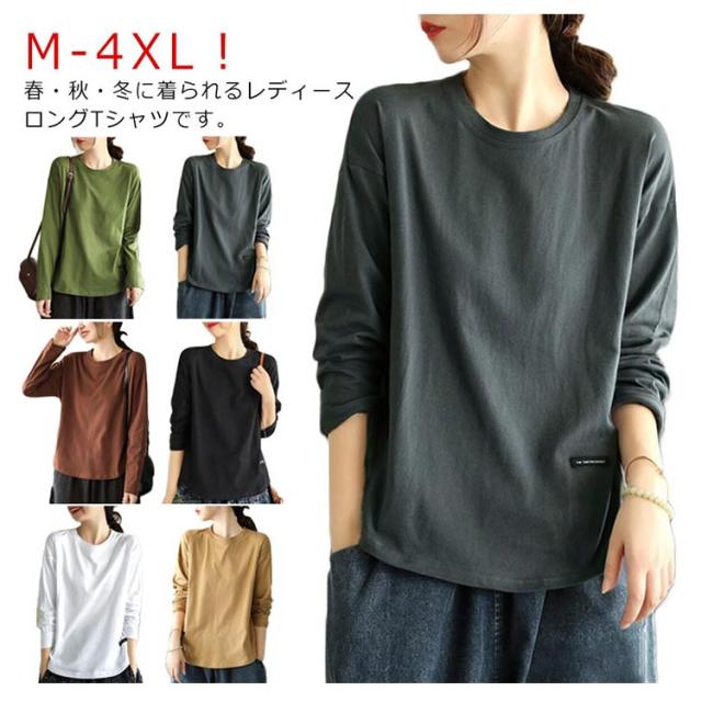 | M-4XL!春・秋・冬に着られるレディースロングTシャツです。 シンプルで上品なデザインなので洋服にも合わせやすい。 部屋着としても、暖かい季節には外出着としても着ていただけます。 | |