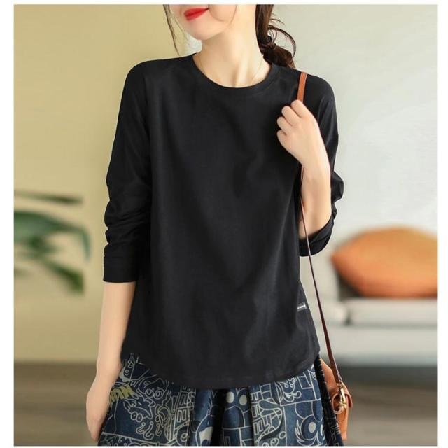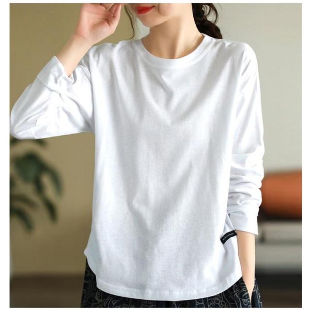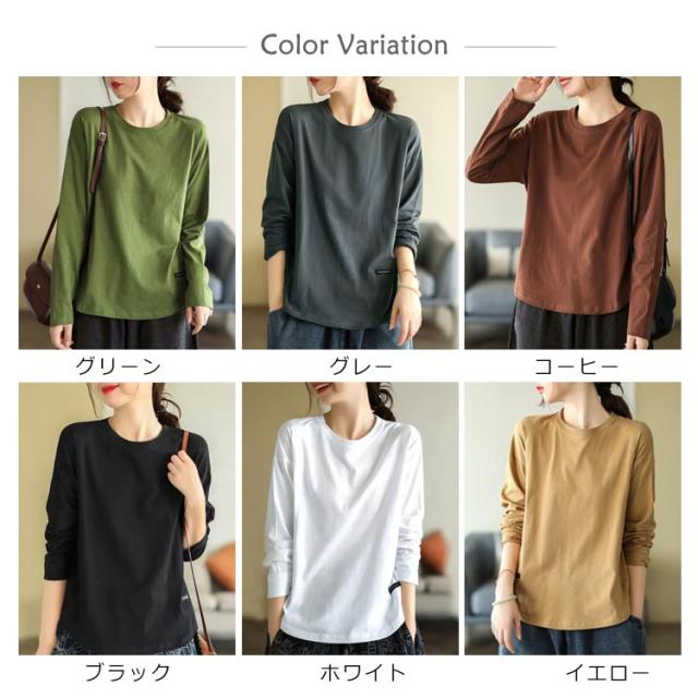 シンプル Tシャツ 春 トップス 秋 無地 ラウンドネック ロンT ロンT インナー 長袖 春秋 薄手 体型カバー 丸首 春 秋 インナー 秋冬 白 冬 カットソー 黒 レディース 秋 冬 送料無料