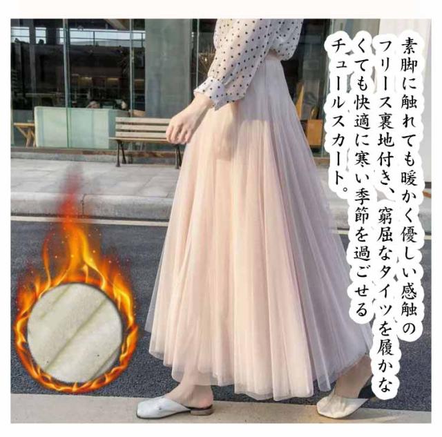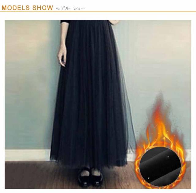 aライン マキシスカート チュールスカート マキシ丈 フリース裏地付き ロングスカート 寒い冬もあったか♪ チュール 裏起毛 寒い冬もあったか♪ 厚手 秋冬 演奏会 発表会 暖かい 無地 体型カバー