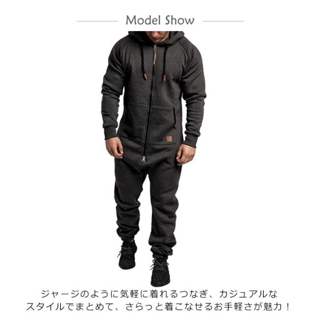 | 裏起毛フード付きオールインワン! ジャージのように気軽に着れるつなぎ、カジュアルなスタイルでまとめて、さらっと着こなせるお手軽さが魅力! 休日のゆっくりとしたリラックスシーンでルームウェアにおすすめ。 ポケットは両サイドに2つ、いつもと違う服を着ると、良い気分転換になります。 ランニングやウォーキング、ジョギングなどさまざまなシーンでの活躍が期待でき、ちょっとしたお出掛けにも使える1枚。 | |