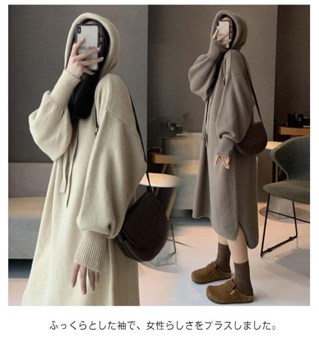 ワンピース ワンピース パーカー ニット レディース フード付き スリット ワンピース ゆったり おしゃれ きれいめ 通勤 通学 オフィスカジュアル 秋