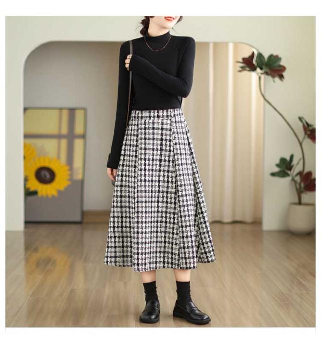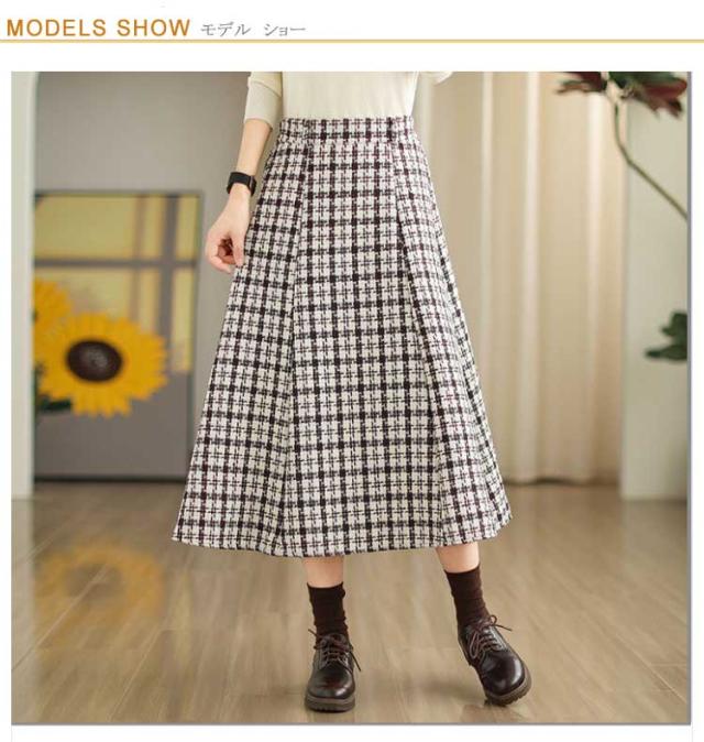 フレアスカート ミモレ丈 aライン マキシスカート レディース ウェストバックゴム 千鳥柄 ハイウェスト 秋冬 フレアスカート ロングスカート ひざ下 フレア スカート 体型カバー おしゃれ