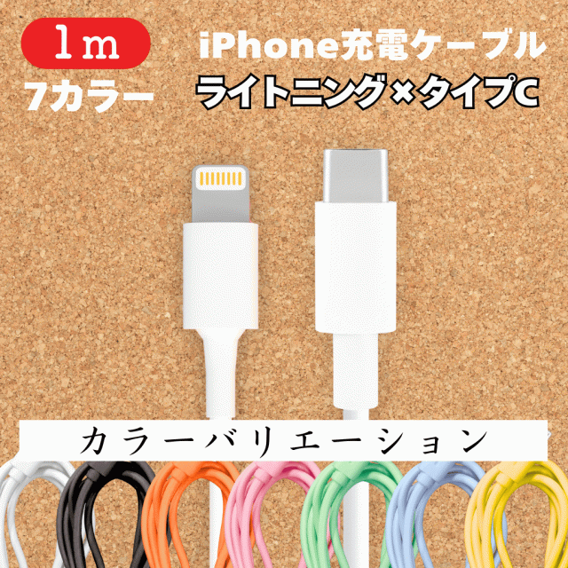 iPhone 充電 ケーブル iphone 1m 1本 ライトニング端子 タイプC端子 アイフォン 携帯充電器 7色 ホワイト ブラック オレンジ ピンク グリーン ブルー イエロー カラー