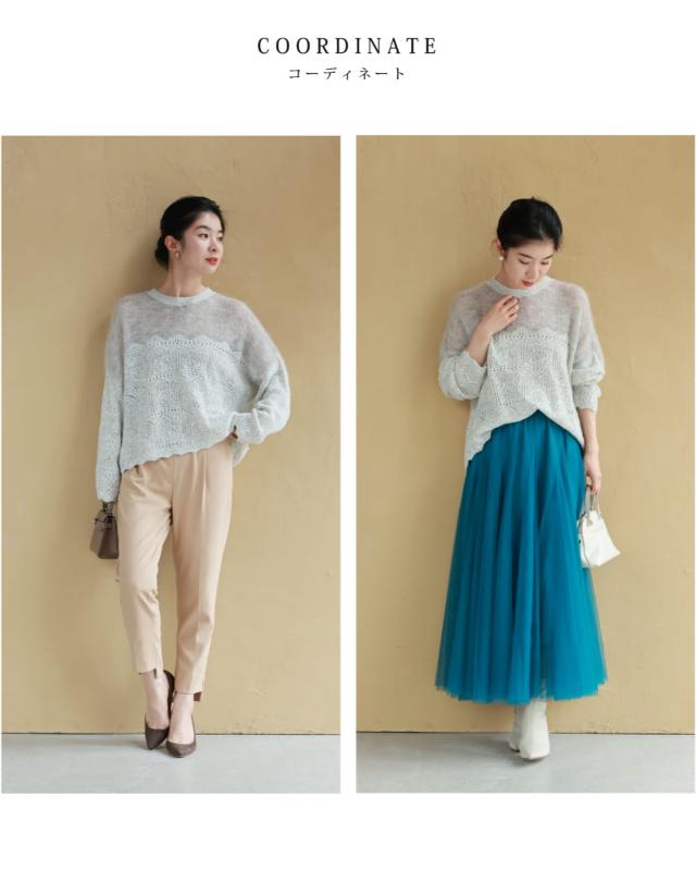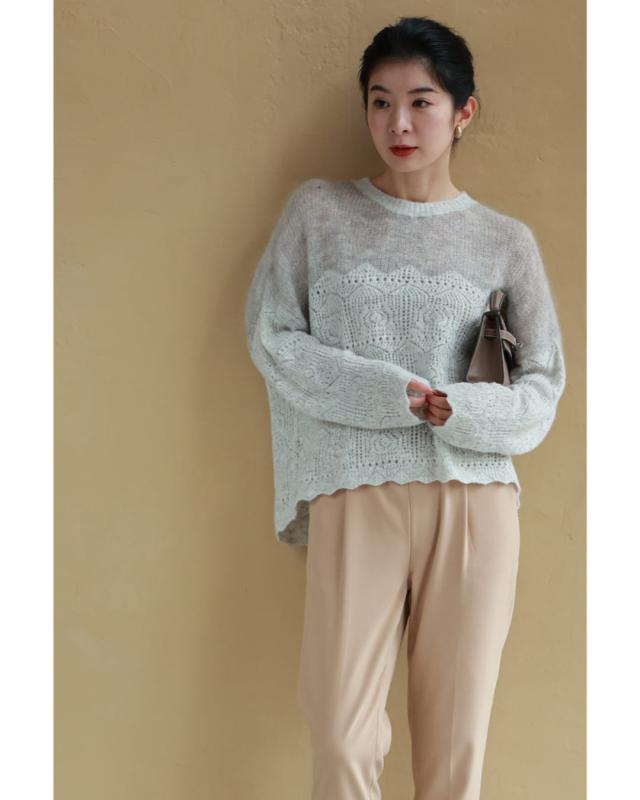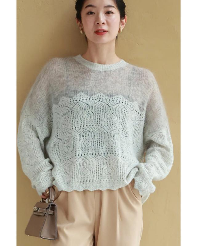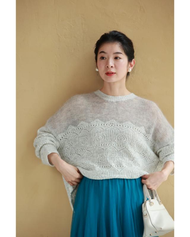 w60959ps 新作 新着 再入荷 CAWAII FRENCHPAVE フレンチパヴェ エレガント ベーシック カジュアル 可愛い かわいい カワイイ おしゃれ オシャレ お洒落 個性 個性的 定番 ベーシック 大人かわいい 大人可愛い 上品 女性らしい デザイン スタンダード ナチュラル きれいめ キレイめ シンプル フェミニン レディース レディースファッション 大人 ママ ミセス 30代 40代 50代 60代 ふんわり モヘア 切り替え 柄ニット プルオーバー トップス 2トーンカラー ざっくり網目 長袖 長そで ロング袖 ワンサイズ Sサイズ Mサイズ Lサイズ 2Lサイズ 3Lサイズ フリーサイズ フリー 小さめ 小さめサイズ小さい 小さいサイズ 低身長 痩せ ほっそり 小柄 細身 標準サイズ 大きめシルエット 大きい 大きめ ビッグシルエット ぽっちゃり F サイズ自由 ゆったり 春 秋 冬 秋服 秋物 冬服 冬物 伸びる 伸縮性 グレー 灰 体型カバー 普段着 日常使い ヘビロテ おでかけ 旅行 休日