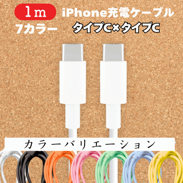 iPhone Android 充電 ケーブル iphone 1m 1本 タイプC端子 アイフォン アンドロイド 携帯充電器 7色 ホワイト ブラック オレンジ ピンク グリーン ブルー イエロー カラー
