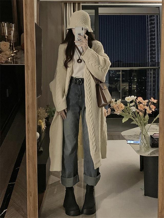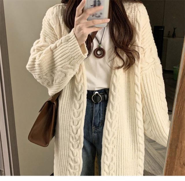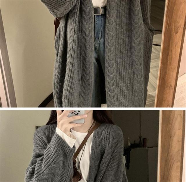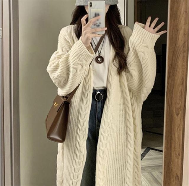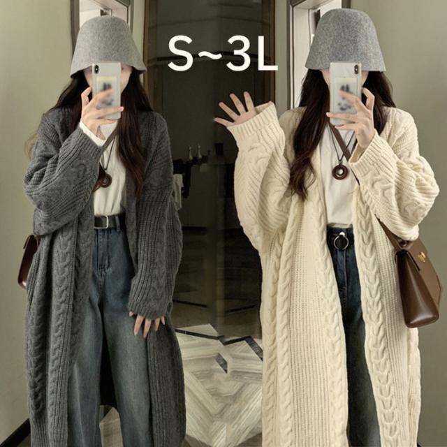ケーブルニット ニットガウン ニットカーディガン ロング レディース 長袖 厚手 カーディガン ロングカーディガン ポケット付き コーディガン 羽織り ざっくり編み 大きいサイズ ミモレ丈 秋冬 体型カバー ビッグシルエット ゆったり カジュアルxz188d7d7m5