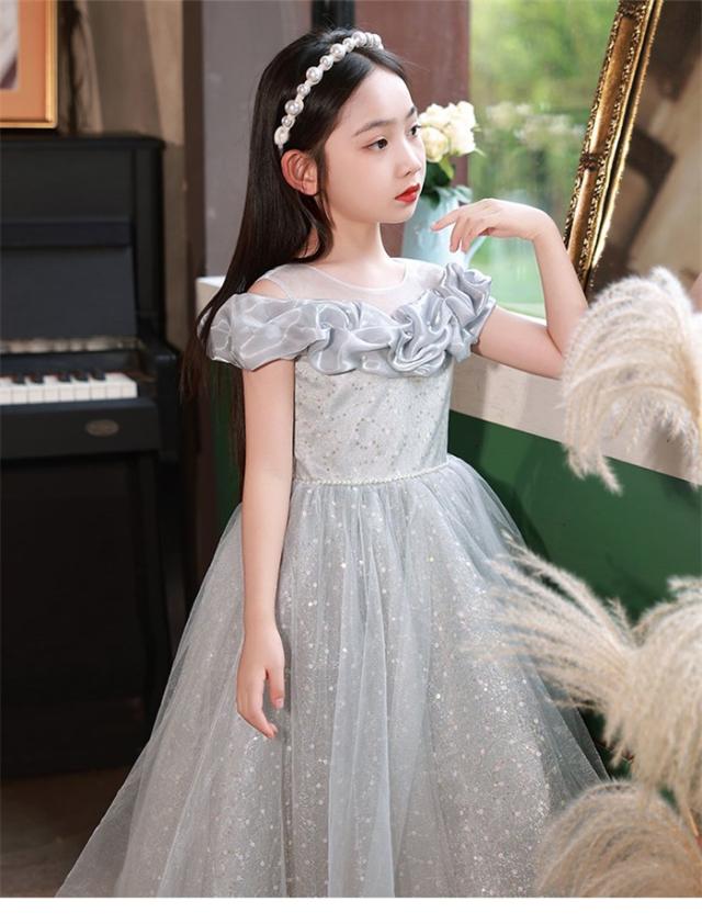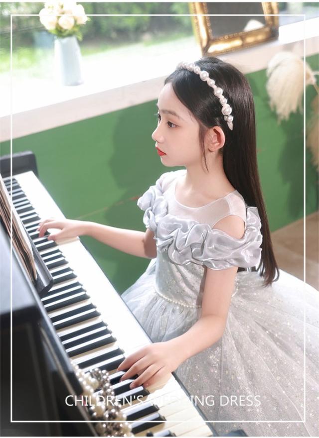 ピアノ発表会 ドレス 子供 女の子 発表会 ドレス 子ども ワンピース グレー お祝い日 演奏会 音楽会 フォーマル 誕生日 撮影 パーティー ジュニア キッズ ロングドレス ロング丈 中学生 高校生 可愛い 七五三 結婚式 卒業式 入学式xz171d7d7m5
