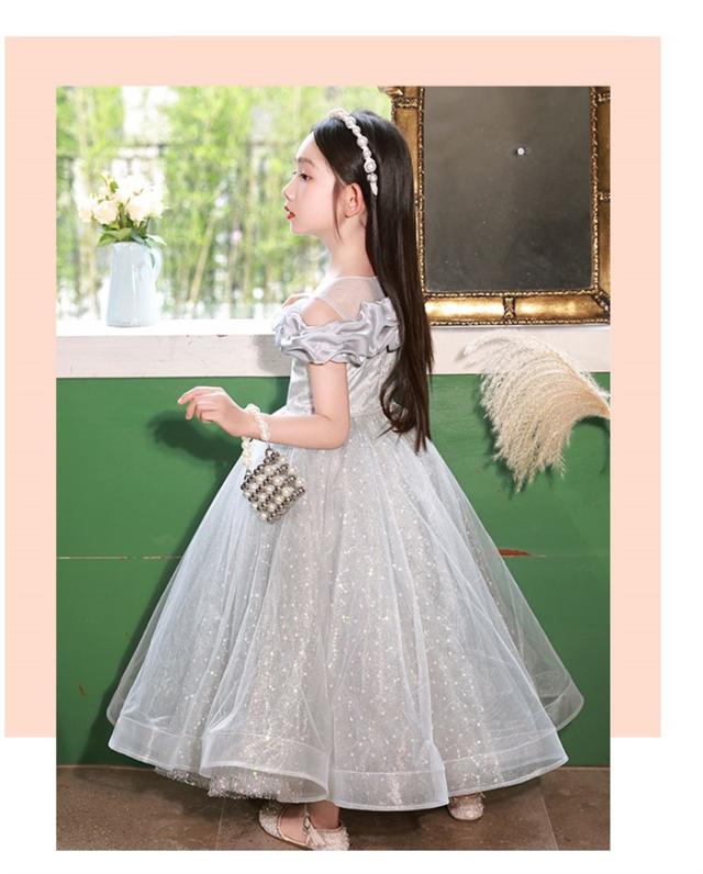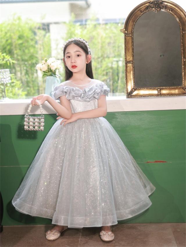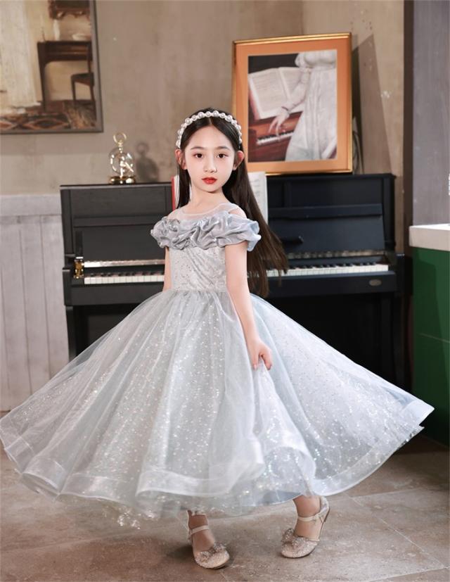 ピアノ発表会 ドレス 子供 女の子 発表会 ドレス 子ども ワンピース グレー お祝い日 演奏会 音楽会 フォーマル 誕生日 撮影 パーティー ジュニア キッズ ロングドレス ロング丈 中学生 高校生 可愛い 七五三 結婚式 卒業式 入学式