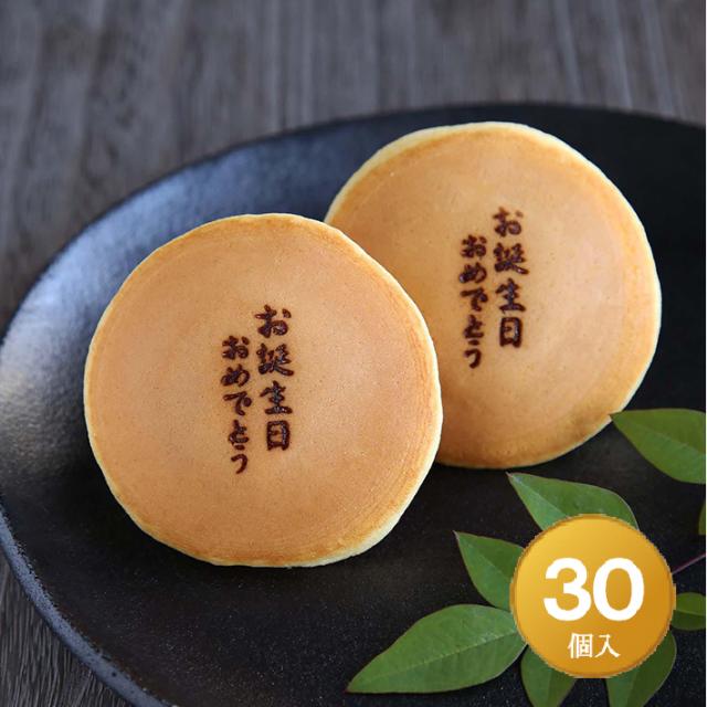 お誕生日おめでとう メッセージ焼印入どら焼き 暁 小倉あん 30個入り 送料無料(北海道 沖縄除く)老舗 和菓子 お菓子 和スイーツ ギフト 贈り物 御祝 お祝い 長寿祝 百寿祝 白寿祝 バースデー プレゼント 父親 母親 祖父 祖母 子供 孫 おかし どらやき