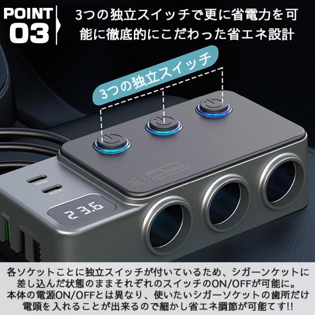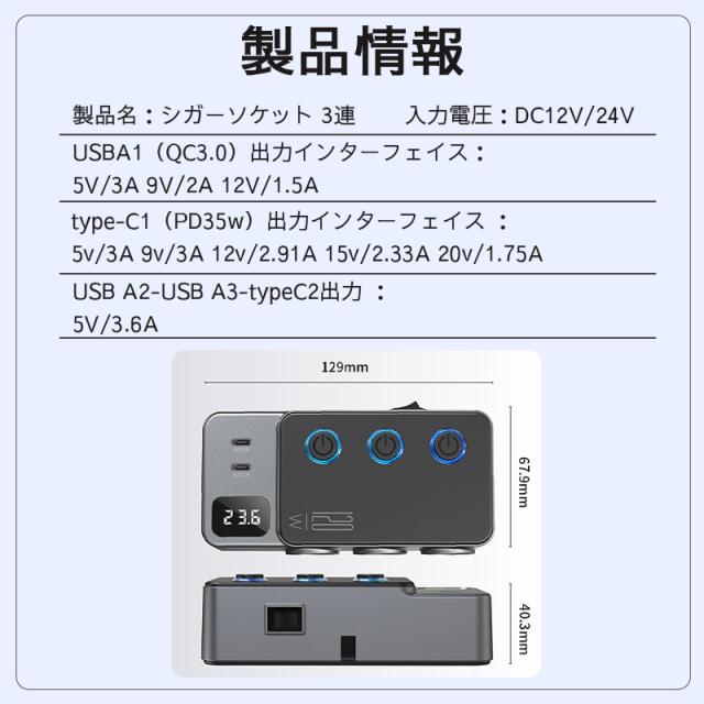 【キーワード】車用 3連 USBポート シガーソケット 分配器 増設 USB 個別スイッチ スマホ タブレット 充電 Quick charge 3.0 3連120W QC3.0急速充電 カーチャージャー 電源ソケット 分配器 増設シガーソケット カーチャージャー USB quick charge 3.0 QC3.0 PD シガーソケット 増設 2連 3連 急速充電 12v 24v シガー ソケット Quick Charge qc 3.0 PD シガーソケットusb usb 変換 Power充電器 車載充電器 車充電器 車 USB 充電 車載 分配器 コンセント 電源 延長