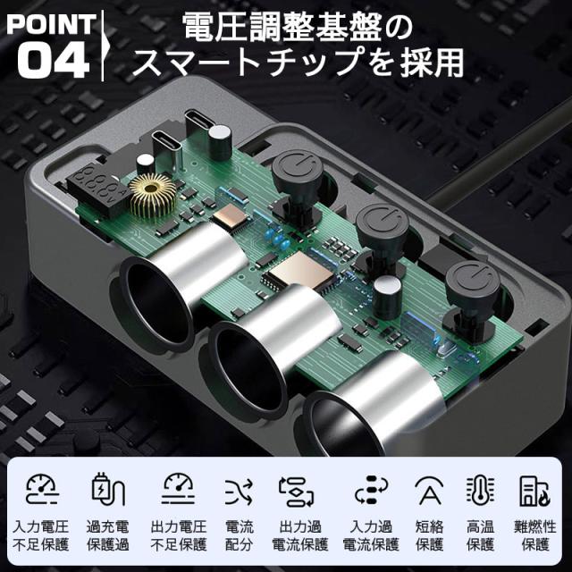 シガーソケット 3連 増設ソケット分配器 120W QC3.0急速充電 usbポート 電源ソケット 急速充電 充電器 スマホ iphone