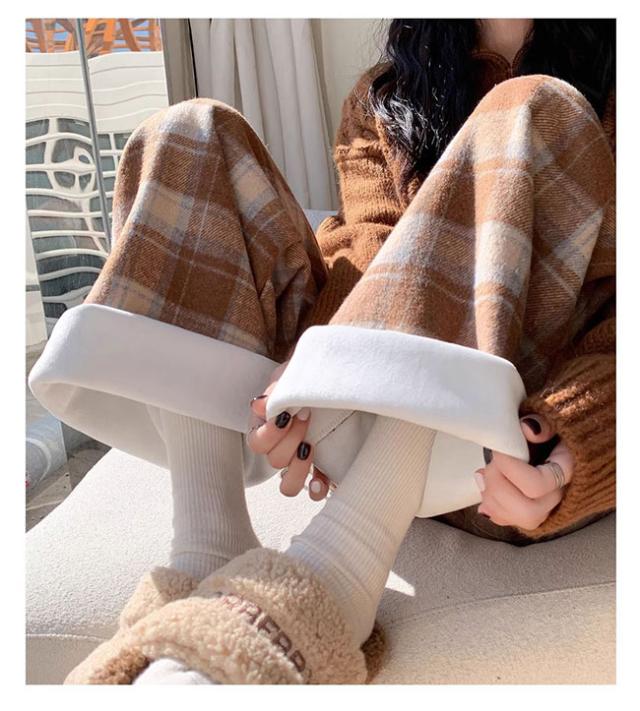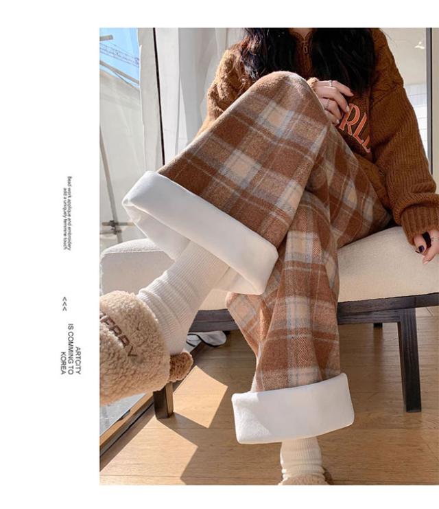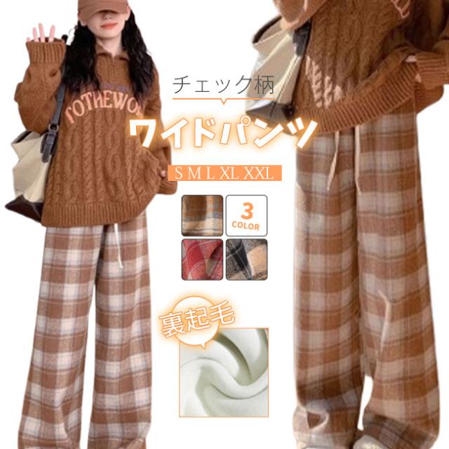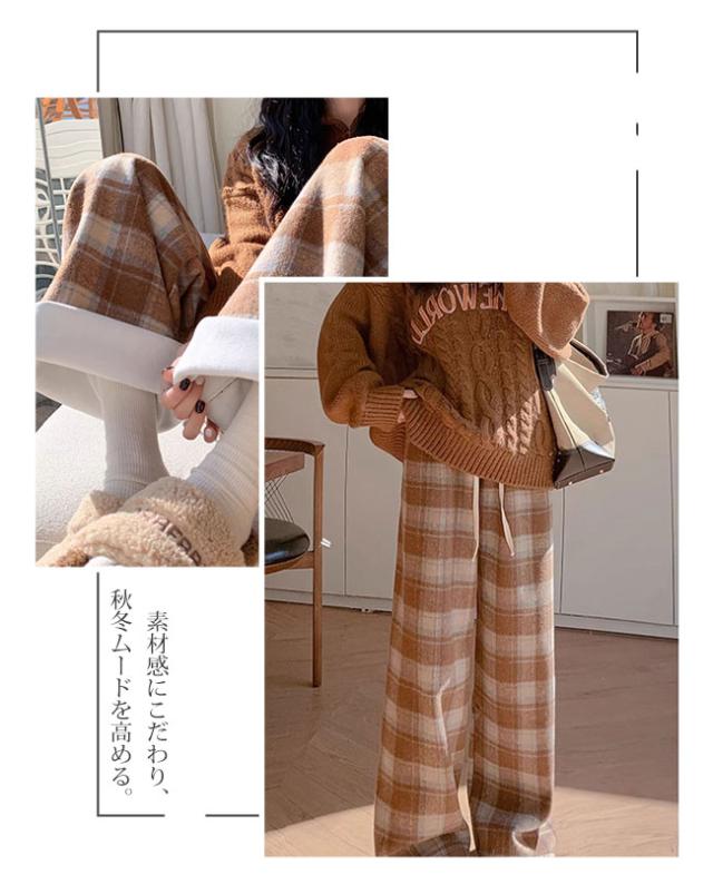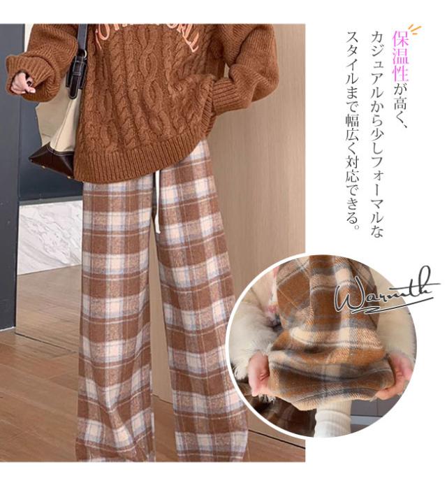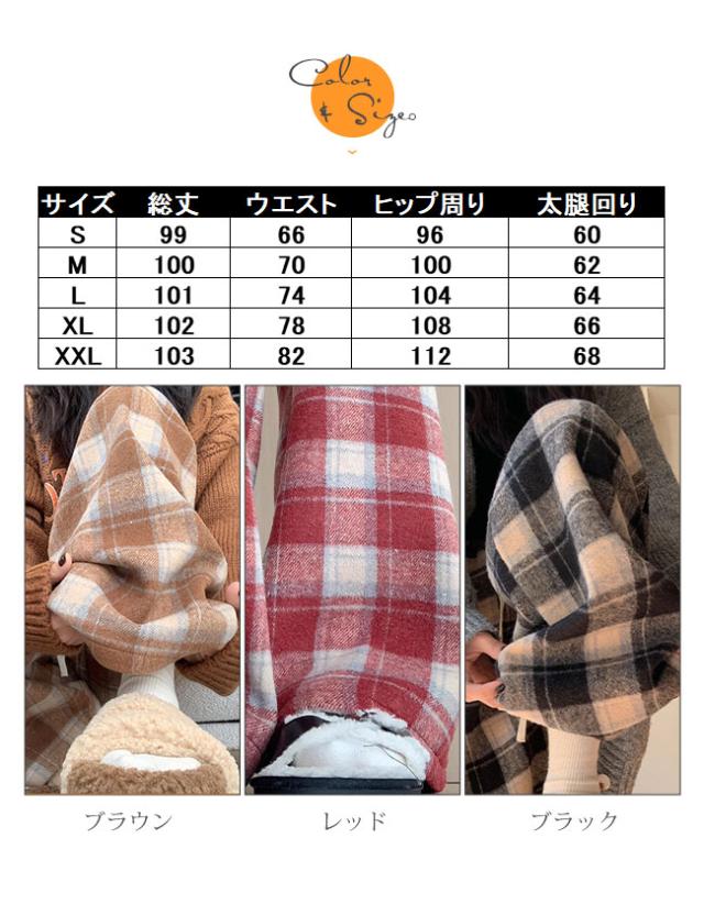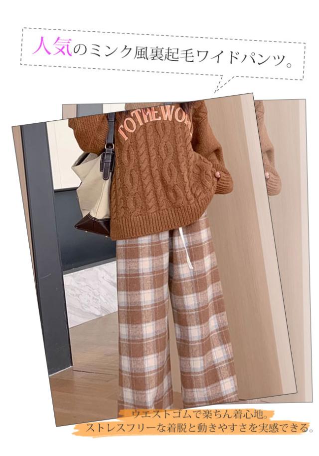 チェック柄ワイドパンツ レディース ストレートパンツ 裏起毛 もこもこ 温か 防寒 チェック柄 ワイドパンツ カジュアルパンツ裏ボアパンツ 裏起毛
